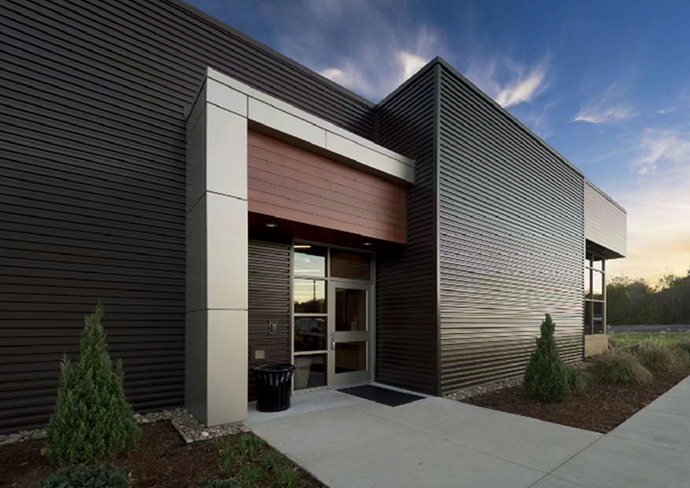 ● HL22-350型隱藏釘式墻板,使用展開寬度為500mm的彩涂板,適合厚度0.5-0.7mm。有A,B,C三種板型,可單獨(dú)使用,也可以混合拼接使用。橫鋪豎鋪都可以。無縫銜接過渡的視覺效果挺括的非對稱設(shè)計(jì)梯形波,兼具力與美,具有的光影效果。